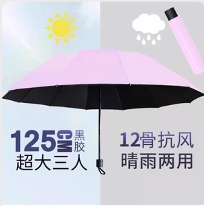 十二骨特大黑胶伞-三人(嫩粉)