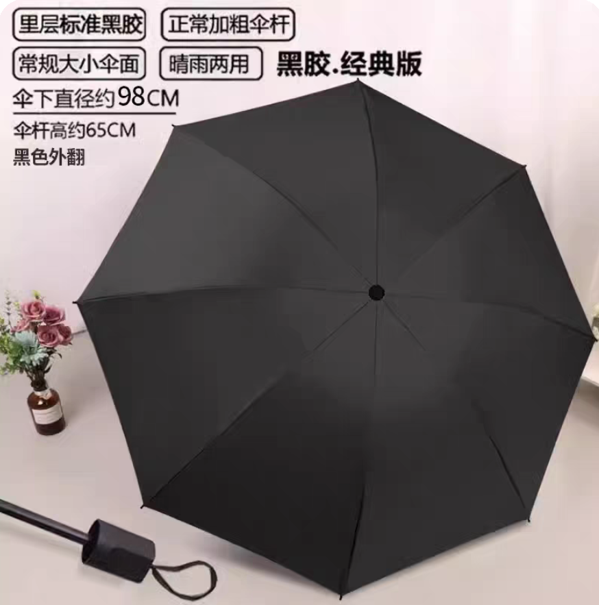 八骨UV晴雨黑胶伞-单人(黑色)