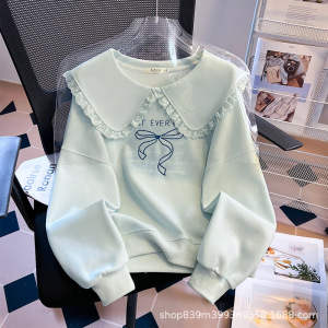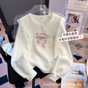 甜美蕾丝娃娃领卫衣女春秋宽松时尚初高中学生休闲可爱少女孩上衣