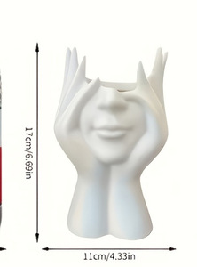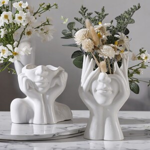 跨境盆塑料PP抽人脸象雕像花瓶轻奢艺术花瓶装饰室内外干花插瓶