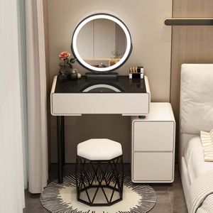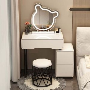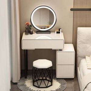 小户型奶油风梳妆台卧室现代简约化妆桌床头收纳斗柜书桌镜子一体