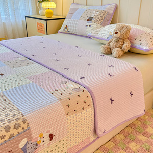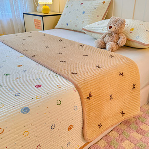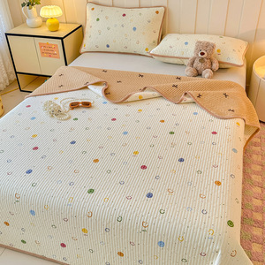一面纯棉一面绒床盖单件双面可用夹棉床单榻榻米床垫褥子四季通用