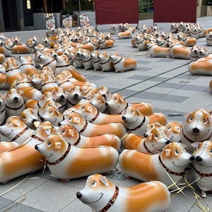 卡通走路气球柯基斑点狗摆地摊牵绳散步站立散步
