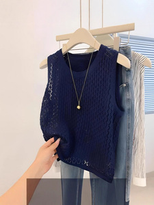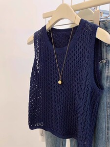 韩系复古镂空无袖针织背心女夏季外穿宽松显瘦别致独特短上衣薄款