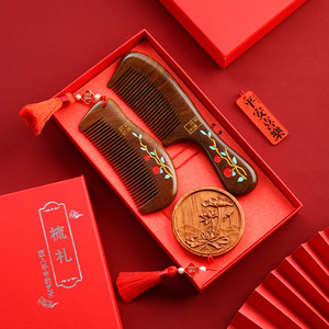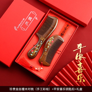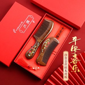 檀木梳子礼盒女士专用结婚梳子一对套装情人节送礼物女友生日妈妈