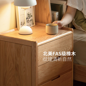 实木床头柜北欧卧室小户型家用收纳现代简约储物柜橡木三抽床边柜