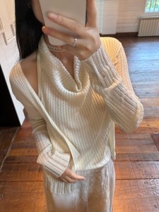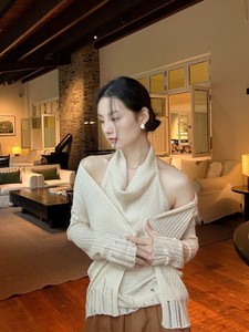 DIGM | 2025秋季废土风荡领挂脖羊毛针织衫开衫毛衣套装女A8M030