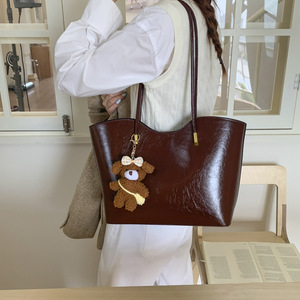 高级感油蜡皮大容量包包女2025新款上班通勤单肩包秋季复古托特包