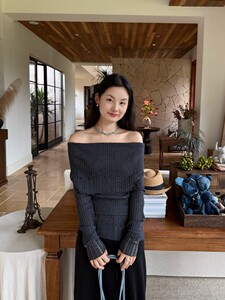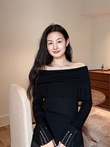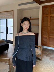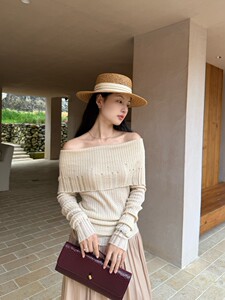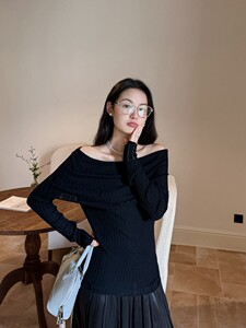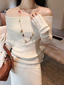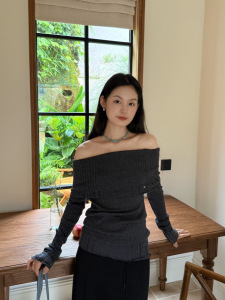DIGM | 2025秋季极简纯欲风一字肩破洞羊毛针织衫毛衣女A8M031