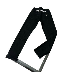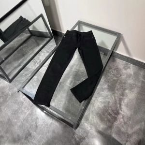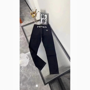 春款高端欧美潮牌三角标徽章牛仔裤男修身直筒弹力休闲潮流长裤