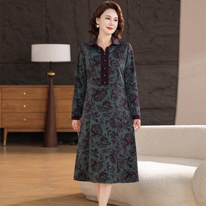 新款中老年女士连衣裙遮肉气质妈妈装国风长袖裙子25秋季中长裙子