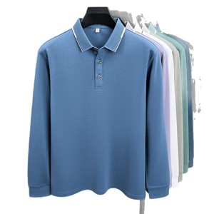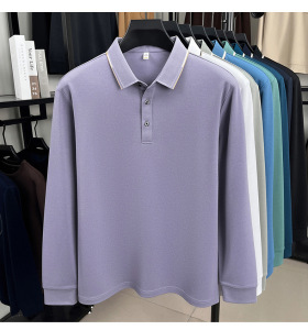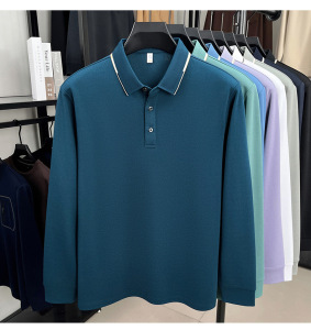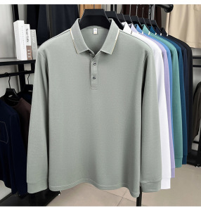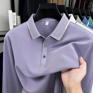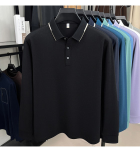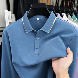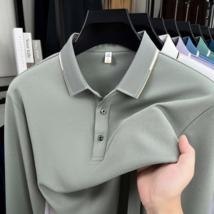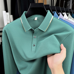 中老年爸爸长袖t恤男士真丝翻领春秋宽松高档打底体恤衫直播爆款