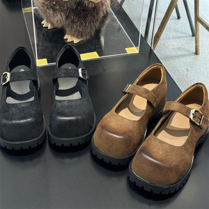 蝶澳真皮大头一字扣带玛丽珍鞋女2025春夏新款百搭擦色做旧平底鞋