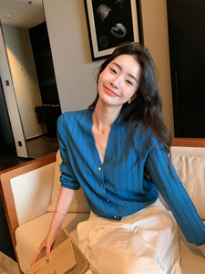 港米服饰/2025秋季新款女装 羊毛/白厂丝V领针织开衫外套女上衣