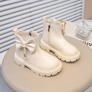 女童小皮靴2025年秋季新款儿童靴子时尚拉链小学生圆头百搭单短靴