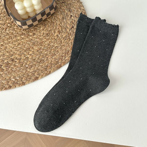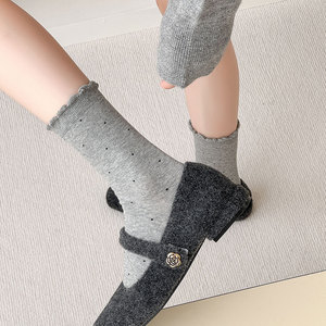 花边波点袜子女中筒袜秋冬款韩系少女甜美风堆堆袜灰色基础款长袜