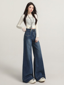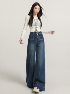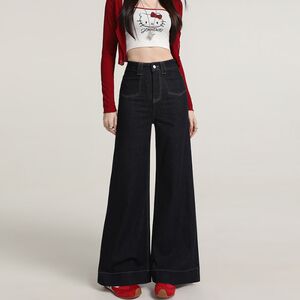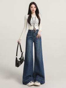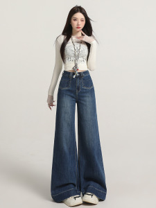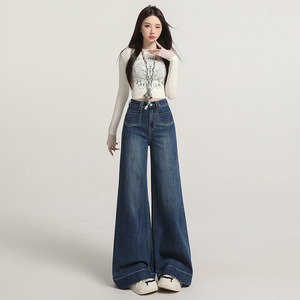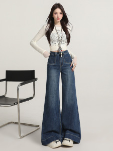 美式阔腿微喇牛仔裤女2025秋季高腰垂感小众前口袋遮胯阔腿喇叭裤