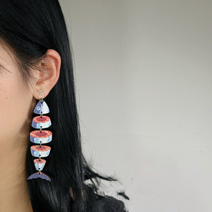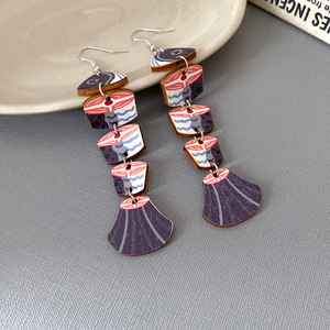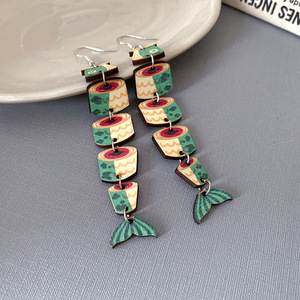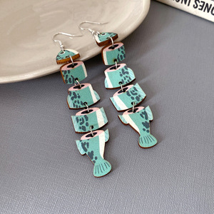 欧美新款木头小鱼耳钩小众独特设计感耳环潮流个性百搭耳饰批发女
