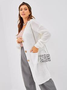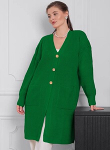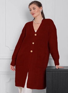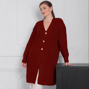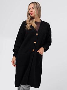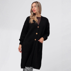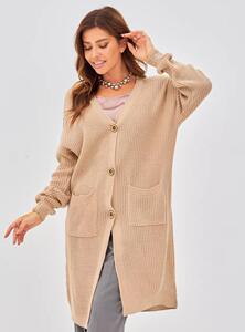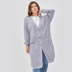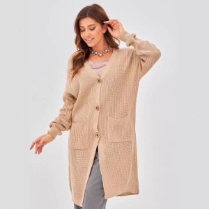亚马逊跨境中长款针织开衫欧美秋冬新款宽松V领木扣毛衣女外套