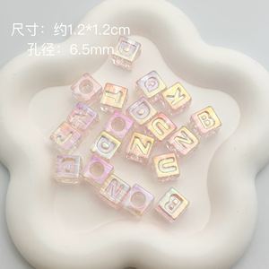 高透镀彩方块字母珠大孔亚克力DIY手机链箱包挂件手链钥匙扣配件