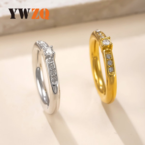 亚马逊爆款不锈钢饰品 时尚设计感情侣对戒4mm镶钻钛钢不掉色戒指