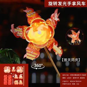 中秋节灯笼儿童手提花灯diy材料包旋转风车发光灯笼花灯摆摊灯笼