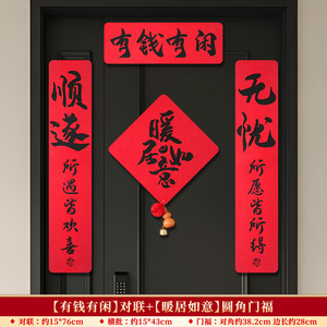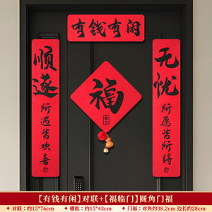 【有钱有闲】对联+【福临门】圆角门福