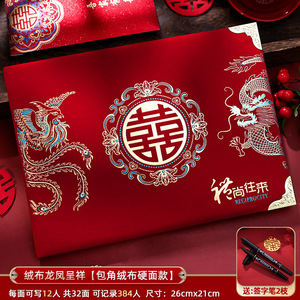 绒布龙凤呈祥【绒布硬壳·16页可签384人】送2支笔