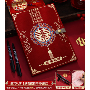 绒布双喜临门【绒布硬壳·16页可签384人】送2支笔