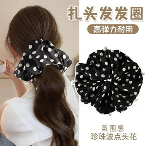 夏季2025新款超大号缎面波点发圈高级感小众头花皮筋扎头发丸子头