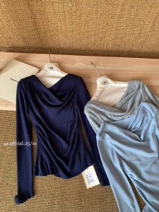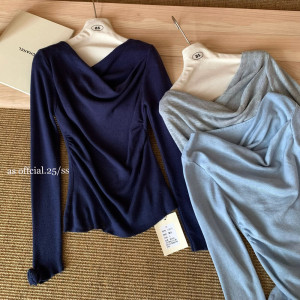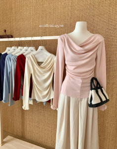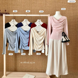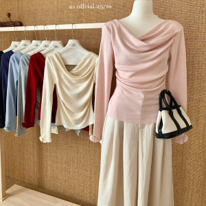 AS OFFICIAL满分秋日袖口小花朵设计荡领不规则简约洋气针织衫女
