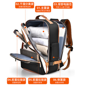 跨境休闲双肩包大容量短途旅行背包女百搭高级感干湿分离户外背包