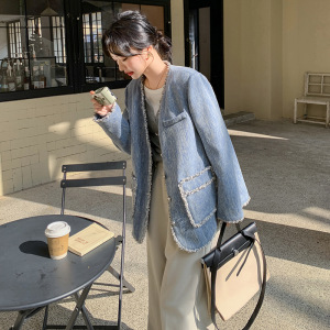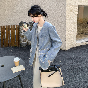 实拍流苏蓝色小香风西装外套女春秋2025新款气质西服小个子爆款