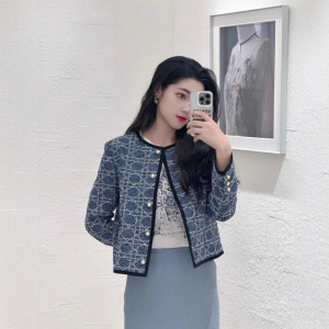 2025夏季新款南油Dio高级感名媛风格纹圆领长袖外套半身短裙套装