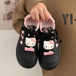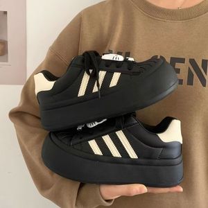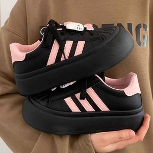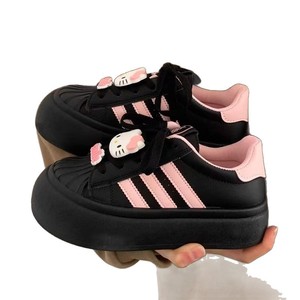 时尚小众贝壳头黑色大头面包鞋女童厚底2025新款爆款休闲运动板鞋