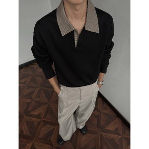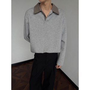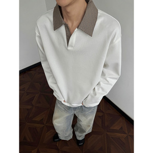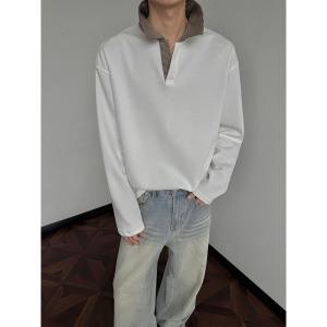 2025秋装新款青少年个性翻领设计感潮流春秋时尚长袖T恤宽松上衣
