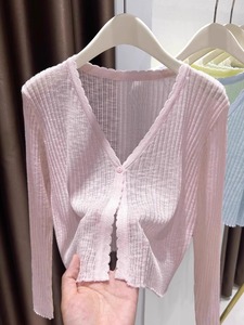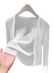 夏日薄款冰丝防晒针织衫女穿搭设计感开衫外套披肩花边V领小上衣