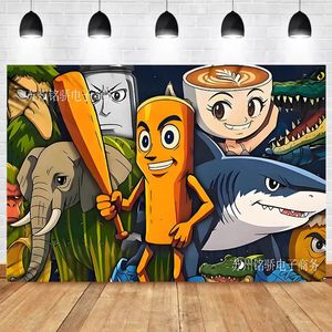 外贸外国山海经主题生日背景布卡通儿童生日派对装饰横幅挂布用品