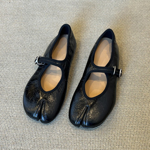 羊皮版~复古玛丽珍鞋女2025新款小众设计感分趾猪蹄一字扣带单鞋
