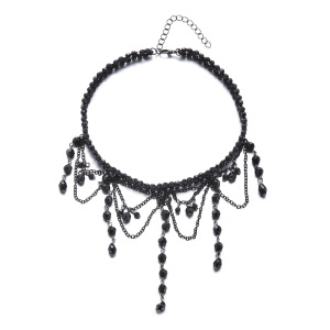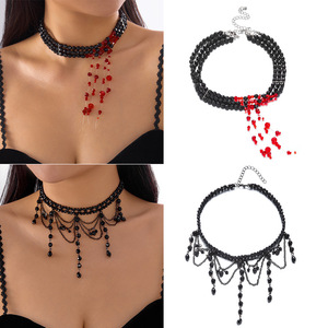 欧美跨境复古哥特风滴血流苏项链女创意暗黑串珠多层万圣节项饰女