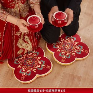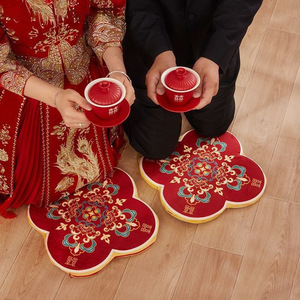 跪垫结婚敬茶坐福垫一对敬酒跪拜红色喜垫新娘改口婚庆用品大全棉