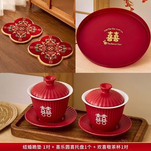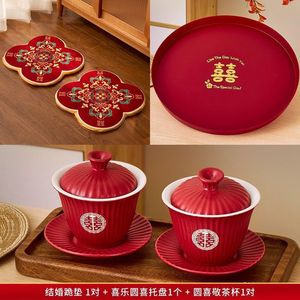 跪垫-同心锁一对+磨砂欢喜茶杯一对