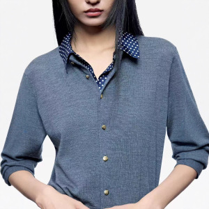 鄂~10羊毛10桑蚕丝 女羊毛开衫25年早秋新可拆卸领复古宽松外套
