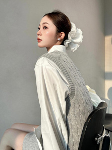 灰色v领针织马甲女早秋穿搭麻花韩系叠穿背心修身显瘦学院风上衣