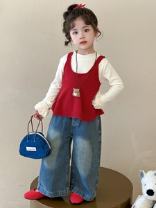 女童春秋季牛仔裤套装2025新款洋气韩系儿童吊带马甲打底衫三件套