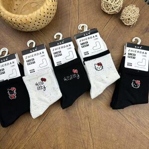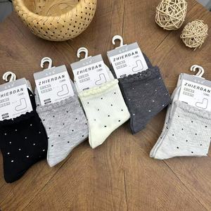 秋冬新款女黑白系中筒袜格雷系ins风百搭时尚学生学院风运动棉袜