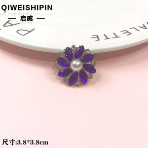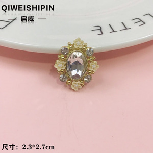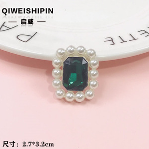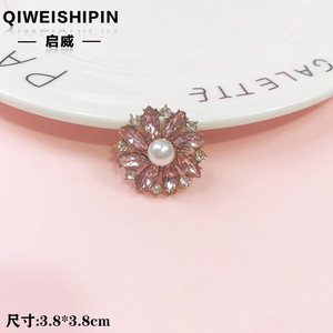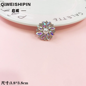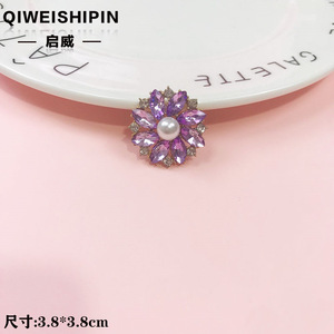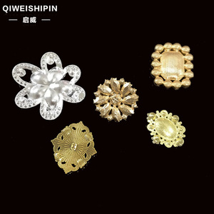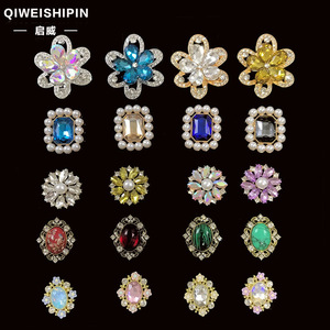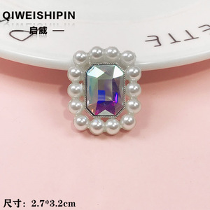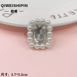 启威长方形花盘珍珠钻五角diy材料 水钻扣鞋包包花配饰 合金配件