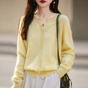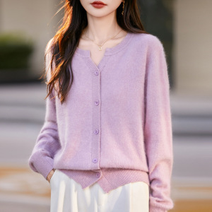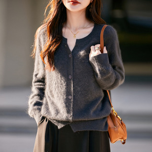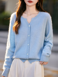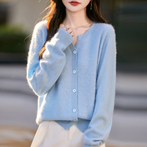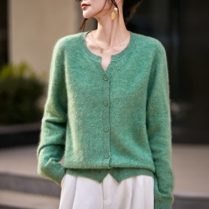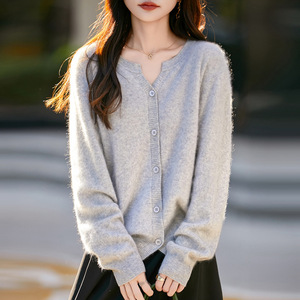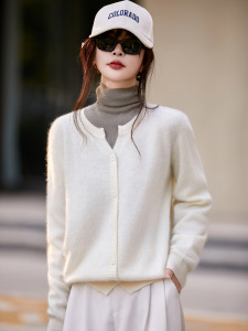 高货!反季捡漏!230g加厚拉绒羊毛羊绒衫无缝圆领开衫毛衣女秋冬