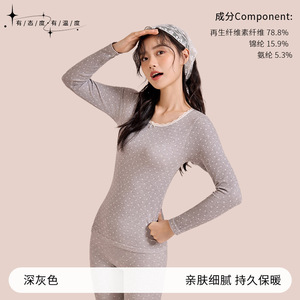 秋衣秋裤套装女学生圆领蕾丝棉毛衫初高中生线衣线裤内衣可外穿