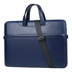 新款笔记本电脑包商务轻薄男女单肩手提包纯色PU防水大容量文件包